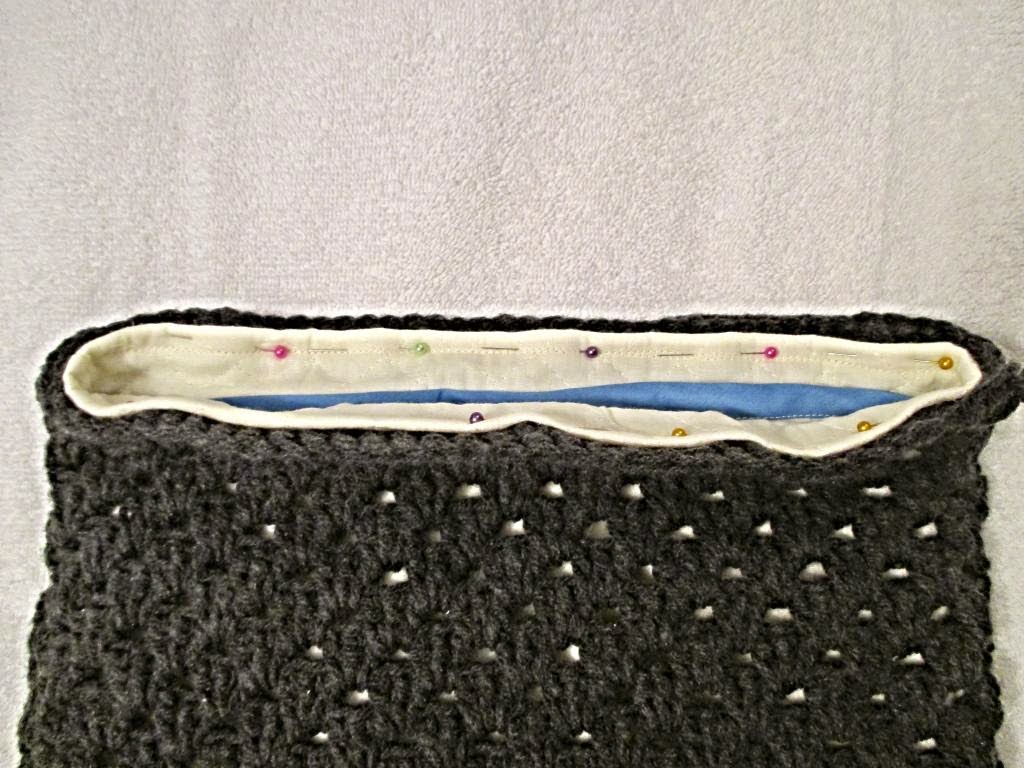 Part 2 I measured the crochet bag & created a lining creating a middle (2 pocket inside style bag) 2 pieces plus the middle piece as well as a little bias to keep inside lining edging clean..(my mom helped lol)